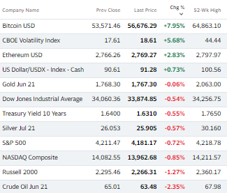 U.S markets traded lower, ending an eventful week for Stonks. The U.S continues to post encouraging data suggesting the recent surge in cases is temporary, vaccinations are rising and the economic recovery is progressing as expected. Inflation was again in focus with the fed keeping its usual stance on policy, sending bond yields higher and causing rates to spike from last week’s decline.